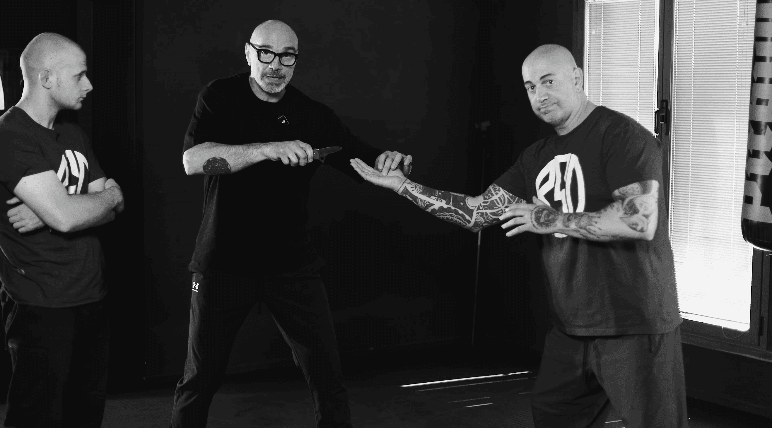 Anche se l’aggressore viene afferrato con il tempismo perfetto, basta un piccolo movimento del polso per ruotare la lama e ferire. E mentre l'altro cerca di trattenere, la sua mano si apre.